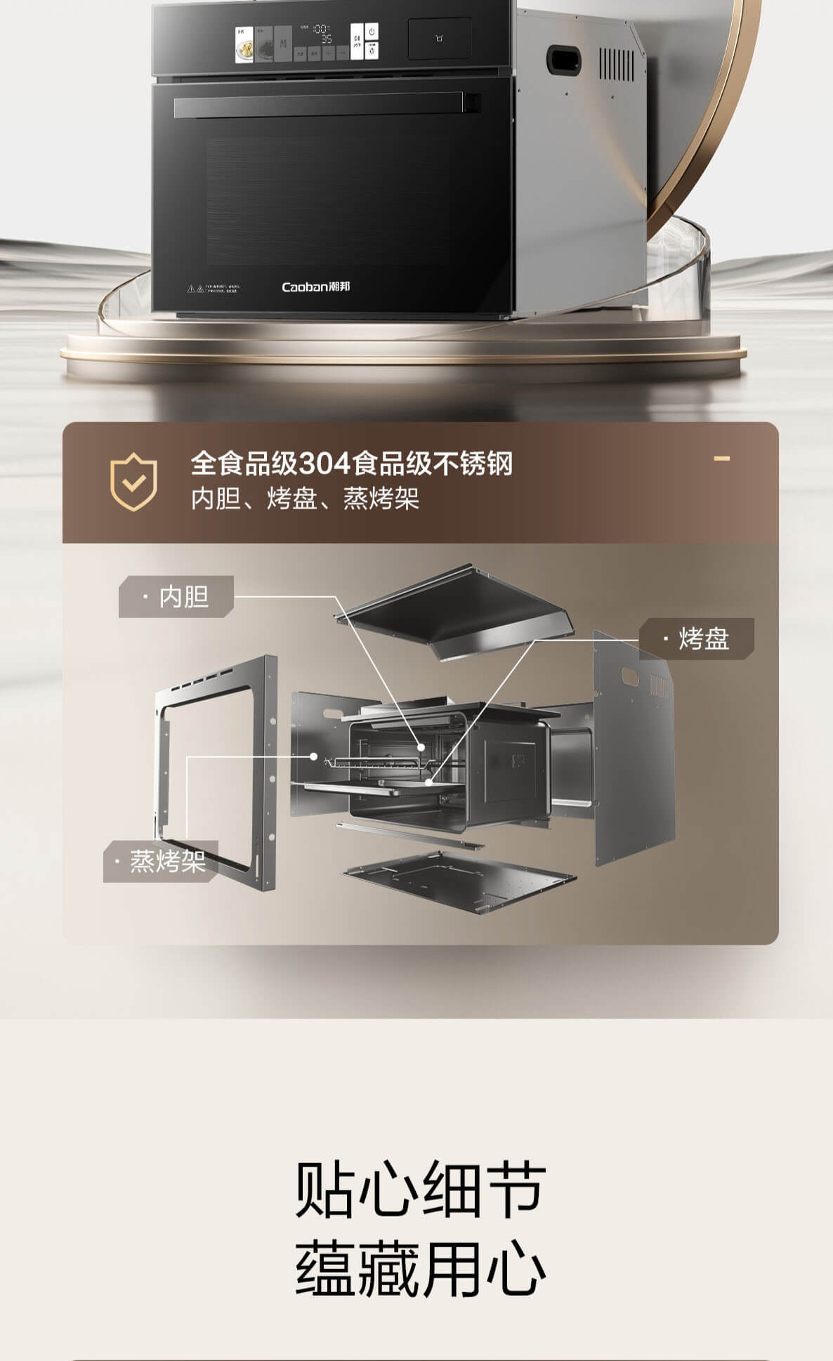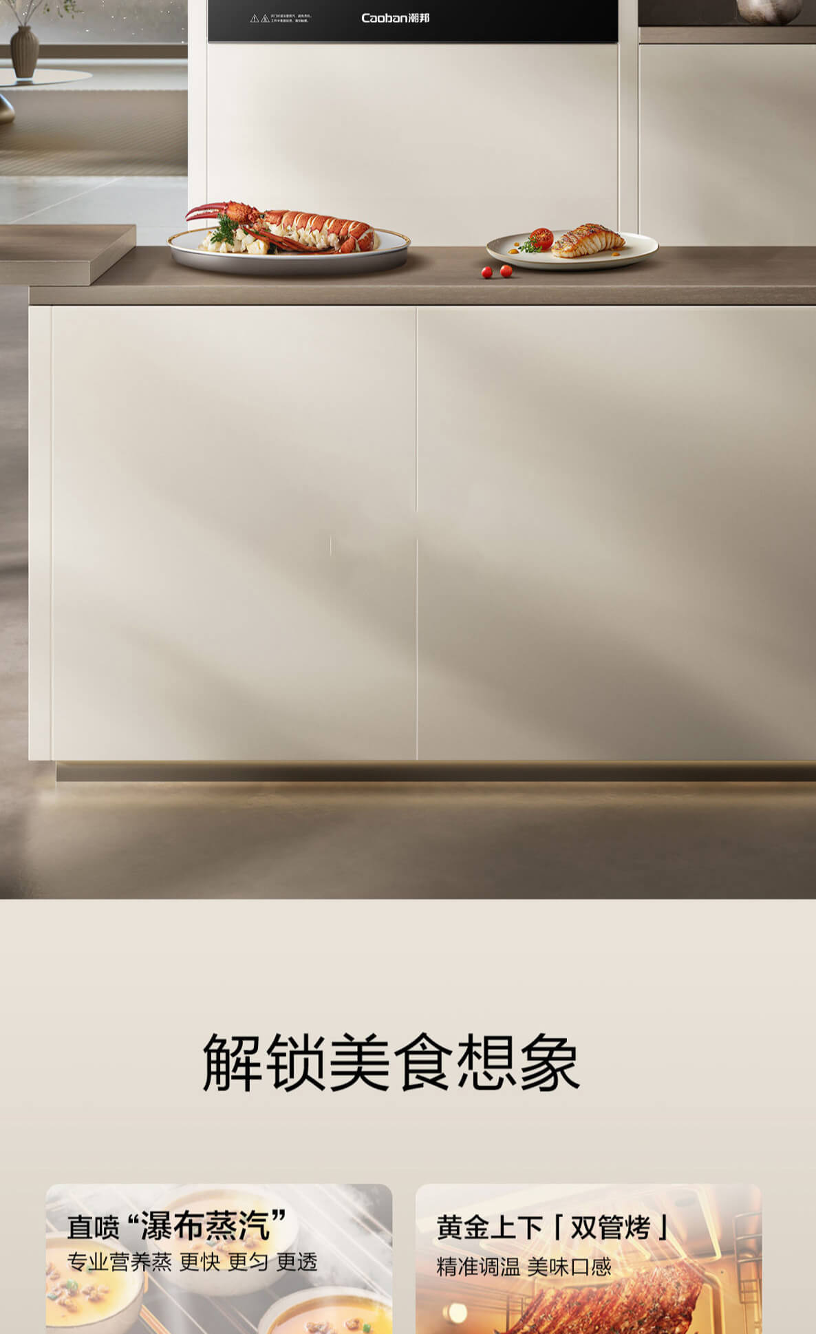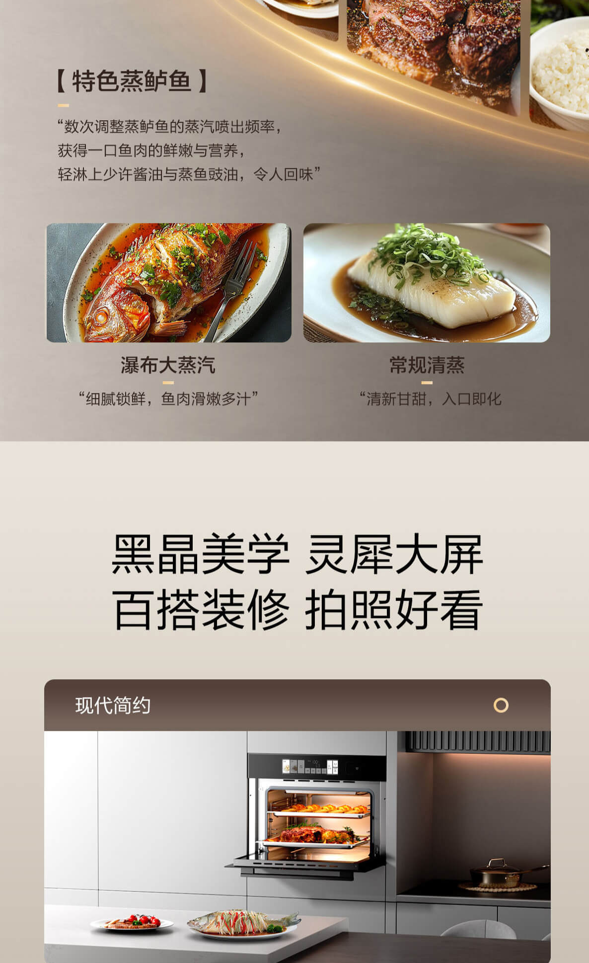 靈犀炫彩大屏,48L大容量,十二大專業蒸烤模式,上下雙管烤,直噴瀑布蒸汽,全304食品級不銹鋼,一鍵高溫殺菌