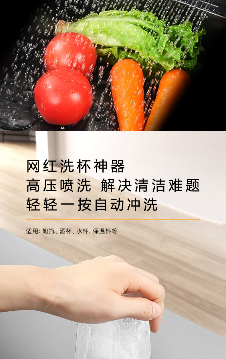 40L大單槽,黑鈦納米涂層,強力清潔洗杯器,雙層保潔柜,階梯置物不飛濺,一體沖壓