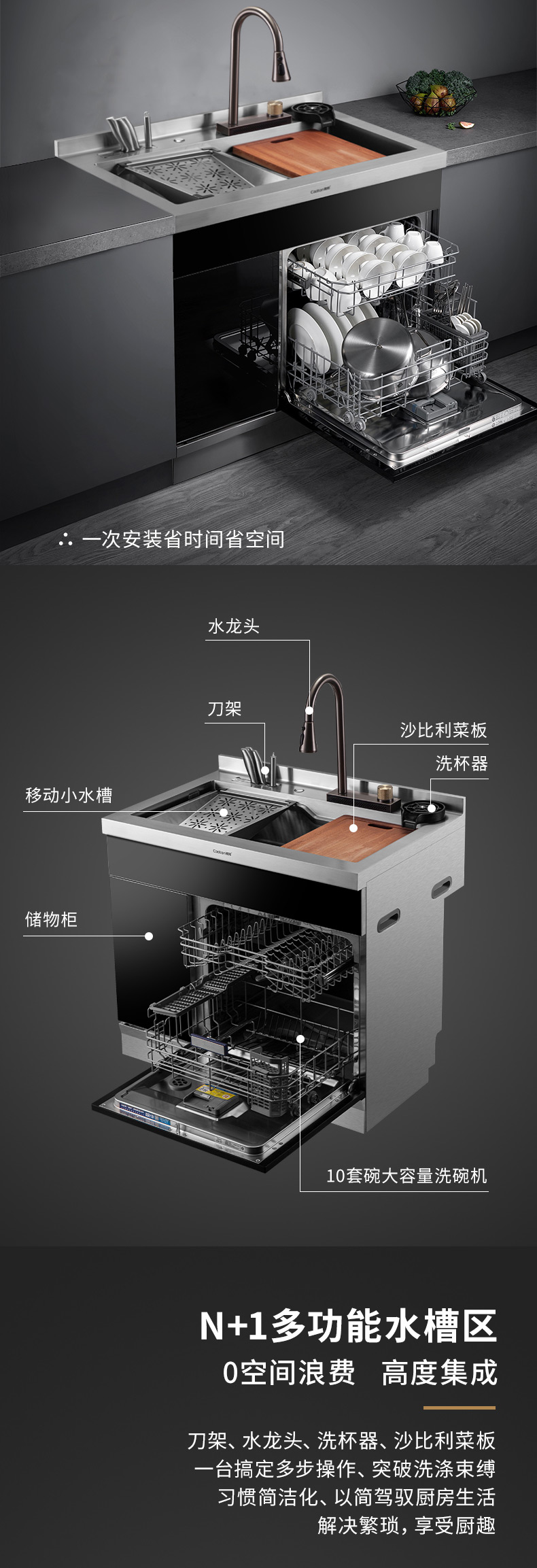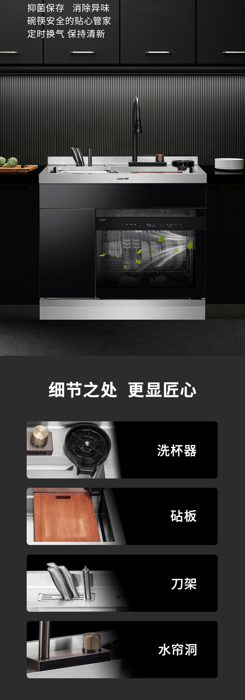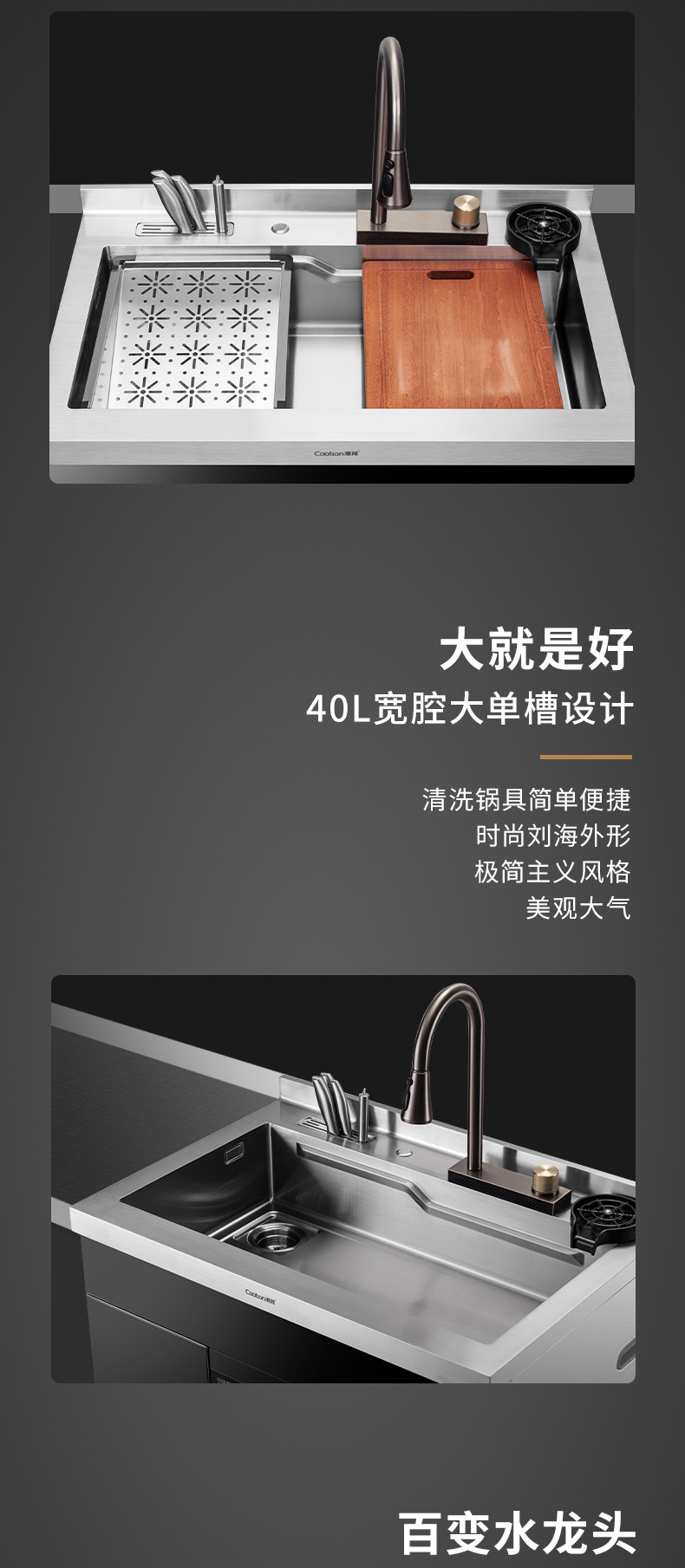 40L大容量水槽,可變伸縮式水龍頭,便捷洗杯器,洗碗機(jī),主動(dòng)強(qiáng)排設(shè)計(jì)